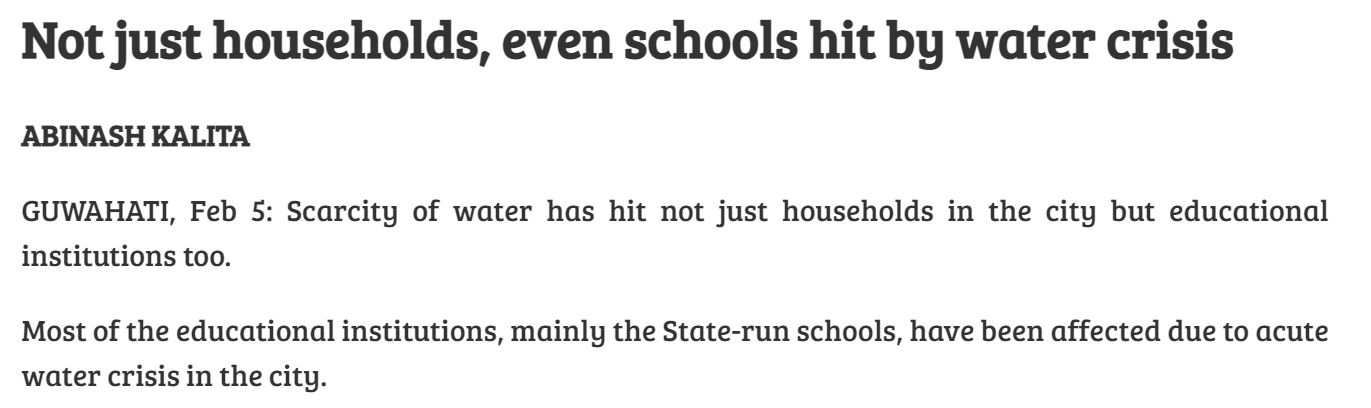 Not just households, even schools hit by water crisis unicefassam / February 6, 2021 0 0 Read Time:0 Second Share Facebook Twitter Email
