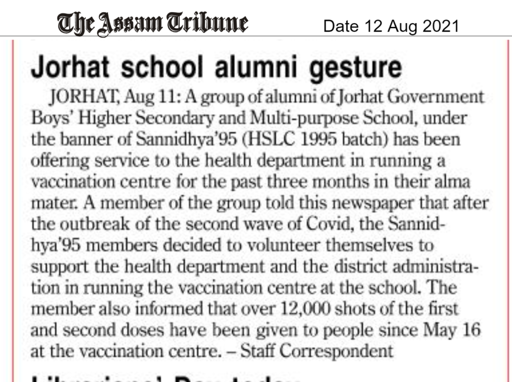 Jorhat school alumni gesture unicefassam / August 12, 2021 0 0 Read Time:0 Second Share Facebook Twitter Email