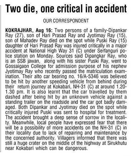 Two die, one critical in accident unicefassam / August 17, 2021 0 0 Read Time:0 Second Share Facebook Twitter Email