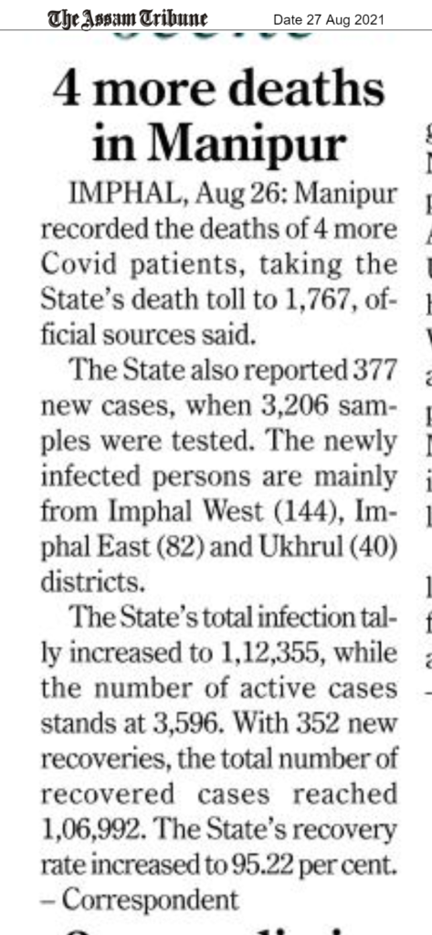 4 more deaths in Manipur unicefassam / August 27, 2021 0 0 Read Time:0 Second Share Facebook Twitter Email